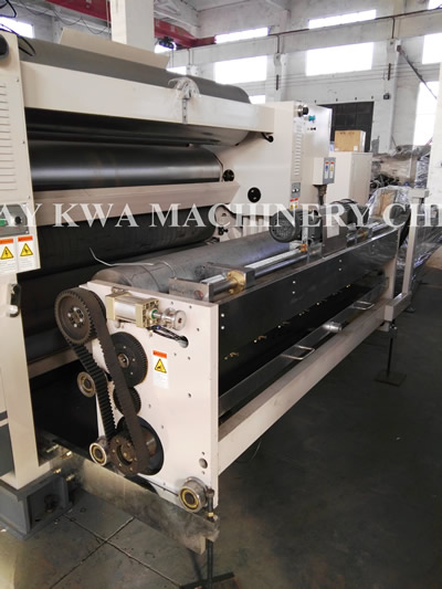 4. Los rodillos corrugados, el rodillo de presión y el rodillo de encolado se presionan neumáticamente, lo que mantiene el funcionamiento estable. Los rodillos de corrugación se procesan con carburo de tungsteno.